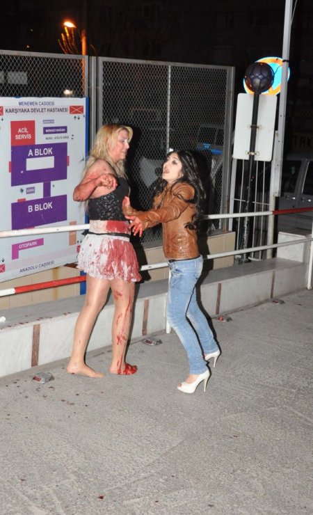 Olay, saat 04.30 sıralarında Karşıyaka Devlet Hastanesi Acil servisi önünde yaşandı. Arkadaşlarıyla birlikte bir süre eğlenen ve alkol alan S.K., kolundan yaralanması sebebiyle hastaneye getirildi. Tedavi altına alınan S.K.'nin koluna serum takıldı. Ancak doktorun kendisine yönelik tavırlarından rahatsız olduğunu iddia eden S.K., serumu çıkartıp hastaneden ayrılmak istedi. Arkadaşının aşırı derecede kan kaybettiğini düşünen Gülbahar Akkuş (19), S.K.'yi başka bir yere gitmemesi ve hastanede tedaviyi kabul etmesi için ikna etmeye çalıştı. Yaralı S.K., çok sayıda polis ile birlikte arkadaşı Akkuş'un tüm ısrarlarına rağmen uzun süre tedavi olmayı kabul etmedi. Kolundaki yara yüzünden kanlar içinde kalan S.K., uzun süren uğraşların ardından tedavi olmayı kabul etti. S.K.'nın durumunun iyi olduğu öğrenildi. CİHAN