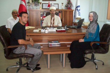 İlçe Müftüsü Hüseyin Baş, Caroline Uhlending 'e (Meryem) İhtida Belgesi vererek tebrik etti ve İslam dininin temel prensipleri hakkında bilgi verdi.