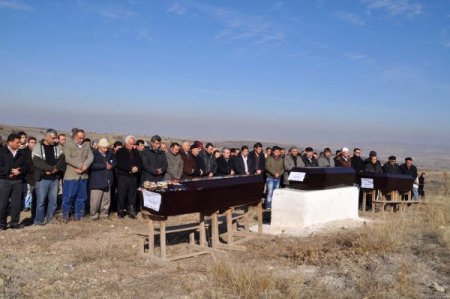 Cemevi'nden alınan cenazeler, vatandaşların omuzunda, köye yaklaşık 500 metre uzaklıkta bulunan mezarlığa kadar taşındı. Daha sonra burada kılınan cenaze namazından sonra cenazeler köy mezarlığında toprağa verildi.