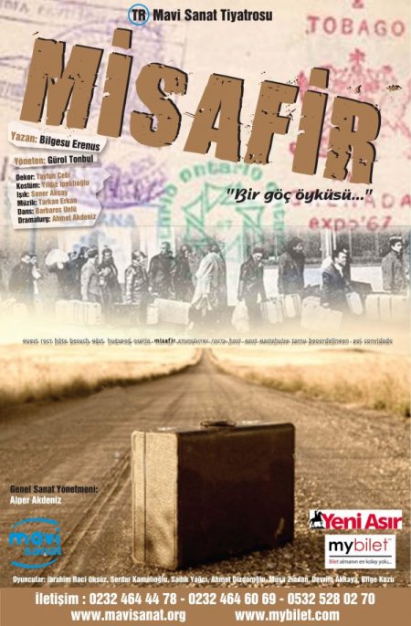 Mavi Sanat Tiyatrosu, trajikomik hikayesi ile izleyenlerin büyük beğenisini toplayan 'Misafir' adlı oyunu, İzmir'de 20 ve 27 Şubat tarihlerinde gösterime sunacak. Güldürdüğü gibi hüzünlendiren ve gözlerin dolmasına sebep olan oyun, Almanya'ya göçü konu ediyor. Dekor tasarımından kostüme, oyunculardan yönetmenine kadar tüm ekip profesyonel sanatçılardan oluşuyor. Almanya'ya göçün 50. yılı olması sebebiyle ve UNESCO'nun 2011 yılını somut olmayan miras yarenlik geleneği olarak ilan etmesi, Bilgesu Erenus'un yazdığı, Gürol Tonbul'un yönettiği 'Misafir' oyununu anlamlı kıldı. İzmir E.Ü. Atatürk Kültür Merkezi'nde sahnelenecek olan oyun, İzmir seyircisinin beğenisine sunuldu. Biletler, AKM Gişe ve www.mybilet.com'da tam 20TL, öğrenci 15TL, gruplara 15 TL indirimli temin edilebilecek. Oyunu takip etmek isteyen vatandaşlar, www.mavisanat.org'dan bilgi alabilir.Oyunun Yazarı Bilgesu Erenus, yöneten Gürol Tonbul, oyuncular ise İbrahim Raci Öksüz, Serdar Kamalıoğlu, Sadık Yağcı, Ahmet Dizdaroğlu, Musa Zindan, Devrim Akkaya, Bilge Kuzu. Genel sanat yönetmeni ise Alper Akdeniz. CİHAN