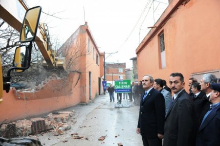 Merkezde olmasına rağmen birçok eksikliği bulunan bölgenin tüm ihtiyaçlarının giderileceğine dikkati çeken Altepe, çalışmaların kimse mağdur edilmeden hayata geçirildiğini ve meydan projesinin de kısa sürede vatandaşların hizmetine sunulacağını vurguladı. Altepe, daha sonra iş makinesini kullanarak kamulaştırılan binaların yıkımını gerçekleştirdi. Soğanlı Mahallesi Muhtarı Adem Asa, mahallelerine hizmetlerinden dolayı Altepe’ye teşekkür etti. Büyükşehir Belediyesi’nin Soğanlı’da vatandaşları mağdur etmeden çalışmalar yaptığını söyleyen Asa, 2012 yılının Soğanlı için güzel bir yıl olacağını belirtti.