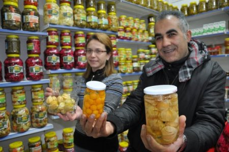 Başbakan Recep Tayyip Erdoğan'ın kullanmasıyla adından sıkça söz ettiren altın çilek, turşu çeşitlerinin arasındaki yerini aldı. Antalya’nın Alanya ilçesinde turşu şarküteri bulunan Hüseyin Yeğin(42), altın çileğin de turşusunu yaptı.