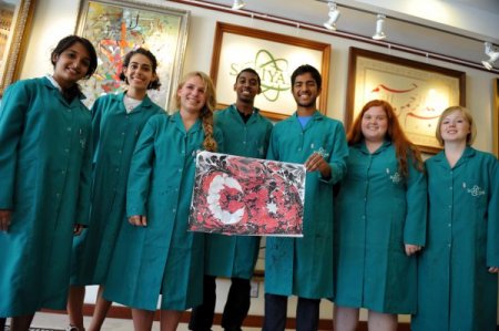 Türk Kültür Vakfı’nın (TKV) davetlisi olarak Türkiye’ye gelen bir grup Amerikalı öğrenci, Türkiye’ye olan sevgilerini ‘ebru’ya nakşettikleri Türk bayrağıyla gösterdi.