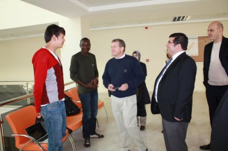 Daha sonra dil laboratuvarı, kütüphane ve sınıfları gezen Dent, Senato odasında akademisyenlerle buluştu. Toplantıya katılanlar arasında Amerikan ve Özbekistanlı akademisyenlerin olmasından memnun kaldığını dile getiren Dent, “Hem uluslararası öğrencileriniz hem de uluslararası akademisyenlerinizin olmuş olması vizyonunuzun ne kadar geniş olduğunu gösteriyor.” dedi.