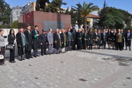 5 Nisan Avukatlar Günü dolayısıyla Atatürk Anıtına çelenk bırakan Baro Başkanı Sinan Akgöl, baro yönetimi ile beraber saygı duruşunda bulundu.