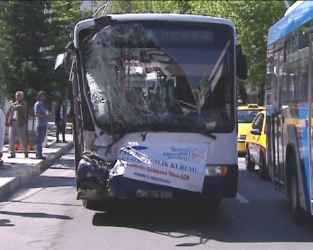 Kaza bu sabah 09.30 sıralarında Ankara'da meydana geldi. Demirtepe Gazi Mustafa Kemal Bulvarı'nda seyir helindeki 06 LNJ 35 plakalı belediye otobüsü, 38 numara önüne geldiğinde aniden yola çıkan yayaya çarpmamak için fren yaptı. Yolun ortasında aniden duran otobüse, arkadan gelen Ayhan Ünal'ın 06 FG 696 plakalı başka bir belediye otobüsü duramayarak çarptı. Çarpmanın şiddetiyle öndeki otobüs yaklaşık 20 metre sonra durabildi.