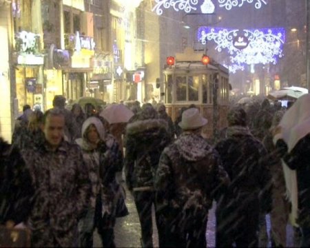 İstanbul’da akşam saatlerinden itibaren etkili olmaya başlayan kar yağışı, Taksim’de de kendisini gösterdi. Bir anda bastıran kar yağışı Taksim’i adete beyaza bürüdü. Karanlık havada yağan yoğun kar, İstikal Caddesi’nde yürüyen vatandaşları zor durumda bıraktı. Bazı vatandaşlar atkı ve kollarıyla yüzlerini korumaya çalışırken, bazıları da yoğun kar yağışından şemsiyeleriyle korundu. Görüş mesafesinin düşmesine sebep olan kar yağışı sebebiyle vatandaşlar yürümekte güçlük çekti.