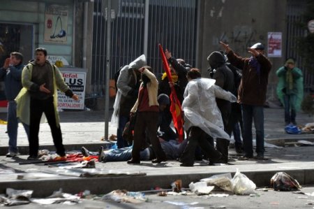 Polisin müdahalesiyle geri çekilen göstericiler ara sokaklara dağıldı. Grup üyeleri kırdıkları kaldırım taşlarını ve topladıkları şişeleri polise fırlattı. Kızılay'ı savaş alanına çeviren göstericiler ile polis arasında kovalamaca yaşandı. Ara sokaklara dağılan grup üyeleri zaman zaman bir araya gelerek, yine Kızılay’a yürümeye çalıştı. Çevik Kuvvet ekipleri, toplanmaya çalışan göstericileri dağılana kadar kovaladı.