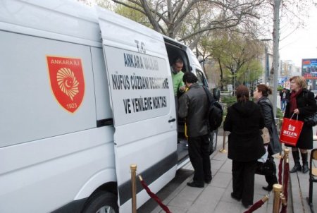 Ankara Valiliği, 12 Haziran genel seçimleri öncesinde mobil nüfus hizmetini yeniden uygulamaya koydu. Daha önce 12 Eylül’de gerçekleştirilen referandumda başlayan uygulama, 11 Haziran’a kadar sürecek. Mobil nüfus hizmetiyle nüfus cüzdanlarında TC kimlik numarası bulunmayanlar, nüfus dairelerine gitmeden ayağına gelen hizmetten yararlanabilecek. Her türlü teknik donanımı sağlanan mobil nüfus bürosu hizmeti verecek olan araçlar, Ulus Atatürk Anıtı önü ve Kızılay Güven park içerisinde çalışmalarına başladı. Ankara Valisi Alâaddin Yüksel ve Vali Yardımcılarına araçlar hakkında bilgi veren İl Nüfus ve Vatandaşlık Müdürü Fehmi Tercan, uygulamanın başarılı bir çalışma olarak oldukça ses getirdiğini ve uygulamadan vatandaşların duyduğu memnuniyeti dile getirdi. Vatandaş odaklı hizmet ilkesinden asla taviz vermeyen Vali Yüksel, "Projenin etkin, verimli ve süratli kamu hizmetine bir örnek olarak hizmetin vatandaşlarımızın ayağına götürülmesinin temel amaçları olduğunu ve bu uygulamanın diğer hizmetlere de örnek teşkil etmesi gerektiğini." dedi. CİHAN
