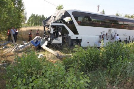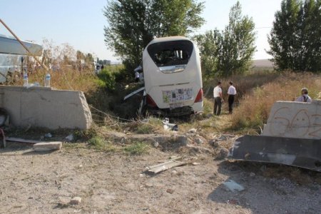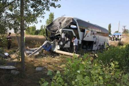 Aydın'ın Didim ilçesinden Ankara istikametine gelmekte olan yolcu otobüsü, başkente 64 kilometre kala yoldan çıkıp tarlaya girdi. Kazada 5'i ağır, 40'tan fazla kişi yaralandı. CİHAN