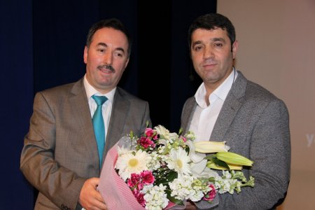 Polatlı Maltepe Dershanesi Genel Müdürü Orhan Çolak, seminer sonrası Eğitimci-Yazar Ziya Baran’a çiçek takdim etti.