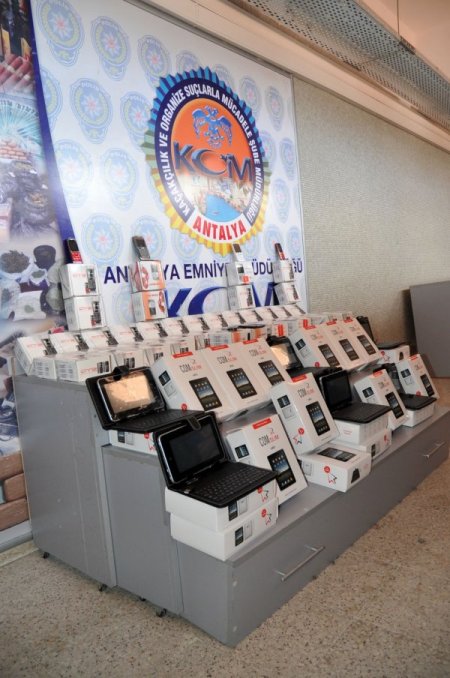 Antalya Emniyet Müdürlüğü Kaçakçılık ve Organize Suçlarla Mücadele Şube Müdürlüğü Mali Büro Amirliği ekipler bir kişin İstanbul’dan kaçak cep telefonu getirdiği bilgisini aldı. Bunun üzerine teknik ve fiziki çalışma başlatan ekipler B.Y.’nin Çin malı diye tabir edilen taklit ürünleri Antalya’ya getirdiğini belirledi. Zanlının son olarak Antalya’ya 394 adet kaçak cep telefonu getirdiğini tespit eden ekipler şahsı gözaltına aldı. Şahın aracından ve cep telefonlarını teslim ettiği adreste yapılan incelemede 394 adet taklit kaçak cep telefonu ile 19 tablet bilgisayar ele geçirdi. Bunun üzerine dükkan sahibi A.Ö. ve E.Y. de gözaltına alındı. Zanlılar emniyetteki ifadelerinin ardından haklarında ‘Kaçakçılıkla Mücadele Kanunu ve Elektronik Haberleşme Kanunu’na muhalefetten işlem yapıldıktan sonra serbest bırakıldı.
