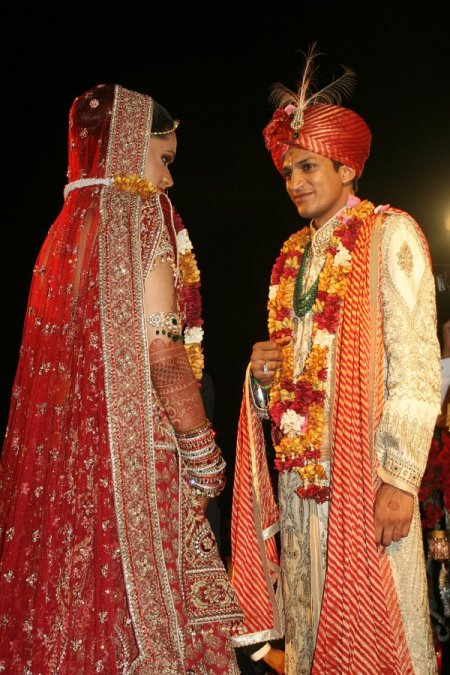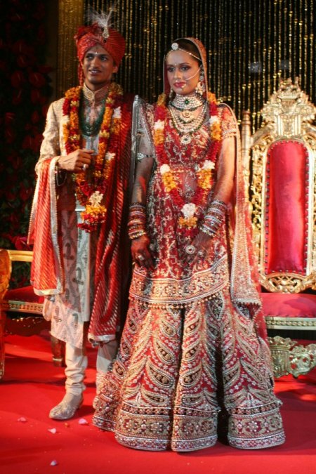 Damat Deepak, düğünün yapıldığı iskeleye at üzerinde, 25 yaşındaki gelin Payal ise, özel bir golf arabasıyla getirildi. Damadın geldiği iskeleye gelen yakınları, 250 metrelik yeri yaklaşık 2,5 saat boyunca oynayarak kat etti. Düğünün yapılacağı alana damadın ardından gelin getirildi. Damadla gelin, Hint geleneklerine göre ayinle yan yana geldi. Ayinin ardından havai fişek gösterisi sunuldu. Daha sonra düğün merasimine geçildi.