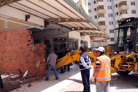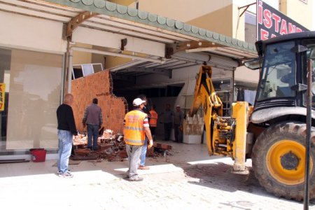 Antalya’nın Aksu ilçesine bağlı Kundu bölgesinde bulunan kaçak olarak bina aralarına yapılan işyerleri yıkıldı.