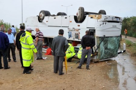 Antalya’da yağışlı hava nedeniyle kayganlaşan yolda direksiyon hakimiyetini kaybeden sürücünün kullandığı midibüsün devrilmesi sonucu 26 kişi yaralandı.