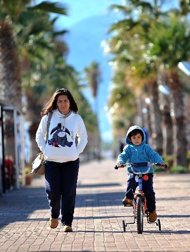 Güneşli ve sıcak havayı fırsat bilen Antalyalılar Konyaaltı Sahili'ne akın etti. Sıcaklığın 16 dereceye kadar çıktığı Antalya'da bazı vatandaşlar çocuklarıyla birlikte yürüyüş yaparken, bazıları da koşmayı tercih etti. Antalyalılar, deniz kenarında köpeklerini de gezdirdi. CİHAN