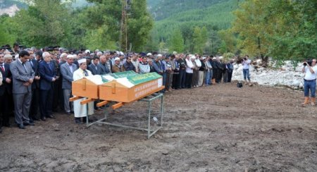 Antalya’nın Serik İlçesi’ne bağlı Haskızılören Köyü’nde meydana gelen selde kaybolduktan sonra cesetleri bulunan anne kız ile birlikte 3 kişi toprağa verildi. CİHAN