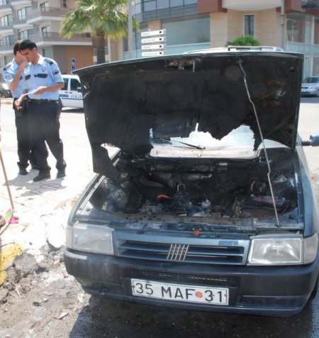 Sahil şeridinde Mehmet Erdal’ın kullandığı 35 MAF 31 plakalı özel otomobilin karbüratörden benzin kaçırması sonucu aracın motor kısmı yanmaya başladı.