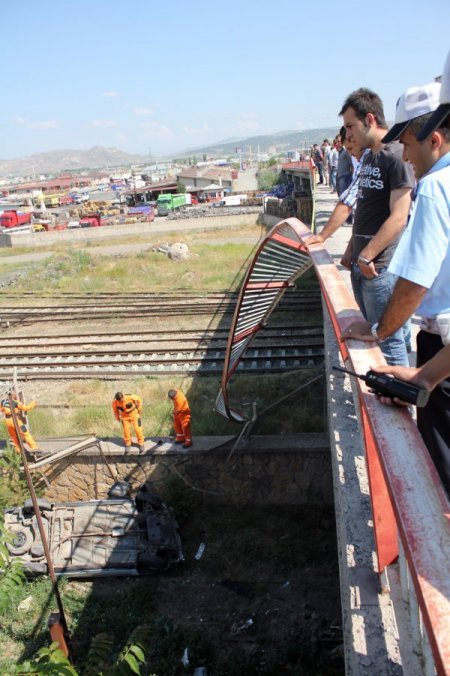 Sivas’ta 6 metre yüksekliğindeki köprü üzerinden yere çakılan otomobildeki 2 kişi, hafif şekilde yaralı olarak kurtuldu.
