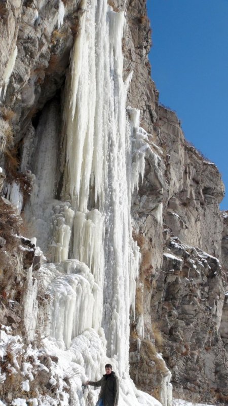 Ardahan’da etkili olan soğuk hava yaşamı olumsuz etkiledi. Gece hava sıcaklığı sıfırın altında 30 dereceye kadar düştü. Kaldırımlarda oluşan buzlanmalar nedeniyle vatandaşların yürürken zorlandığı şehirde, 10 metrelik buz sarkıtları oluştu. Kura Nehri kenarında bulunan kayalıklarda oluşan buz sarkıtları görenleri şaşırttı. Kar sularının erimesiyle oluşan buz sarkıtları adeta donmuş bir şelale görüntüsünü andırıyor. Vatandaşlar buz sarkıtlarını önünde fotoğraf çektirdi.