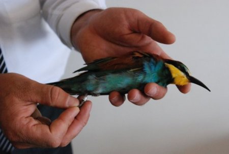 Gaziantep’te arıcılar, ayağında küçük bir demir halka bulunan ve üzerinde seri numarasıyla birlikte ‘Israel Tel Aviv’ yazılı ölü bir arı kuşu ele geçirdi. Arıcılar, kuşun sol burnunda da büyük bir delik olduğunu fark etti. Arı Yetiştiricileri Birliği’ne getirilen kuş, İl Tarım Müdürlüğü’ne teslim edilecek.