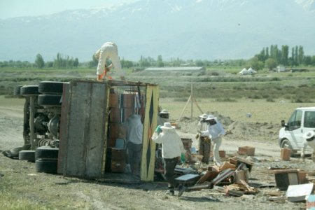 Kaza bugün sabah saat 05.30 sıralarında Erzincan-Erzurum E-80 kara yolunun 7. kilometresinde meydana geldi. 05 FH 210 plakalı Ahmet Deniz (42) idaresindeki arı kovanı yüklü kamyon, sürücüsünün dikkatsizliği sonucu yolun sağ tarafında bulunan 2 metre yüksekliğindeki şarampole devrildi. Kamyonun devrilmesi sonucu arı dolu 500 kovan ortalığa saçıldı. Binlerce arının uçuştuğu Erzincan-Erzurum E-80 kara yolunda sürücüler zor anlar yaşadı.