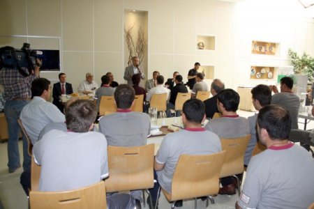 Bakan Arınç, Bursa'da faaliyet gösteren Harput Grup bünyesindeki Kinteks fabrikasında işçilerle öğle yemeği yedi. Burada işçilere hitap eden Arınç, milletin kendilerine güvendiğini ve kendilerinin de hizmet etmeye çalıştığını ifade etti. Hastanelere, eğitim kurumlarına, üniversitelere bakıldığında bunların pek çoğunun kendi dönemlerinde yapıldığını vurgulayan Arınç, Türkiye'nin büyüme hızının dünyadaki ilk beş ülke arasında sayılır hale geldiğini kaydetti. Arınç, şöyle konuştu: