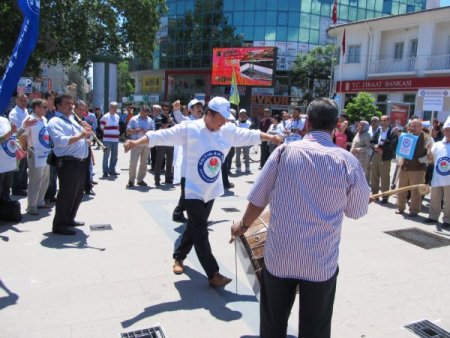 Edremit’te hükümetin, 2012 yılı için açıkladığı yüzde 3.5 artı yüzde 4 zam oranını kabul etmeyen KESK, Kamu-Sen ve Birleşik Kamu-İş'e mensup memurlar iş bırakma eylemi yaparak, davul zurna eşliğinde halay çekti.