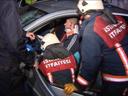Fatih’te aşırı hızla viraja giren otomobil bariyerlere çarptı. 2’si kadın 4 kişi ile kontrolden çıkan otomobilin çarptığı bir yaya yaralandı. Otomobilde sıkışan sürücü itfaiye ekipleri tarafından kurtarıldı. Yaralıların hastaneye sevk edilmesinden sonra, araçta inceleme yapan polis alkol şişeleri buldu.