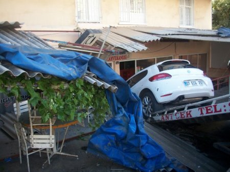 Antalya’da aşırı hız nedeniyle yoldan çıkan otomobil kahvehaneye girdi. Araçta bulunan 2 kişi kazayı hafif sıyrıklarla atlattı.