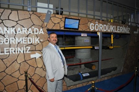 Festival alanında Büyükşehir Belediyesi’ne bağlı birimlerden en çok ilgiyi çeken çadırlardan biri de farklı sunum ve tasarımlarıyla hizmetlerin anlatıldığı ASKİ Genel Müdürlüğü çadırı. Kapıda mavi renkli su damlalarından oluşan maskotları, duvarlarından akan suları, tünel girişi ve baraj dizaynıyla ziyaretçilerini karşılayan ASKİ çadırı, başlangıcından tüketildiği ve atık su olarak bertaraf edildiği son noktaya kadar suyun öyküsünü gözler önüne seriyor. Çadırın bütünü içinde, suyun kuyudan çekildiği zamanların canlandırıldığı ve özellikle çocukların ilgisini çeken maketlerden, 60-70 yıl öncesinin mekanik sayaçlarından günümüze kadar gelen tarihi yolculuğunun bulunduğu bölüme, barajların yer aldığı fotoğrafların ve bilgilerin sunulduğu dev afişlerden, değişik görsel temalara kadar pek çok ayrı güzellik yer alıyor.
