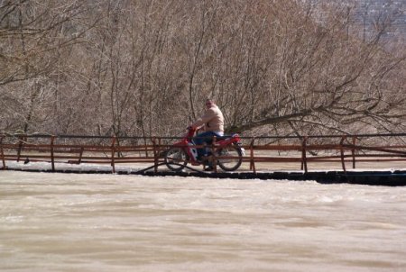 Sakarya Nehri'ndeki su seviyesi, karların erimesiyle birlikte yükseldi. Nehrin debisi saniyede 461 metreküpe çıktı. Dereköy'ün D-650 karayoluyla bağlantısını sağlayan 23 yıllık asma köprünün bir kısmı su altında kaldı. Karaya çelik halatla bağlanan, yüzeyi tahtalarla kaplı olan asma köprüden araçlar geçemiyor. Suyun, zaman zaman üzerinden aktığı asma köprüde yayalar, tehlikeyi göze alarak karşıya geçiyor. Köylülerin 'sırat köprüsü' olarak nitelediklerdiği köprüden geçmeye cesaret edemeyenler ise 4 kilometre uzaklıktaki diğer köprüyü kullanıyor.