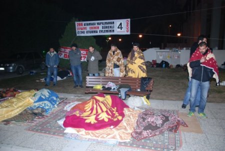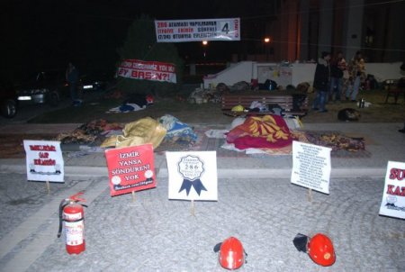 Sınavı kazanmalarına rağmen, Danıştay 12'nci Dairesi'nin, İtfaiye yönetmeliğinin yazılı ve sözlü sınavla ilgili 16'ncı maddesinin yürütmesini durdurması üzerine göreve atanamayan 286 itfaiyeciden 130'u, gece gündüz oturma eylemi başlattı. İzmir Büyükşehir Belediyesi önüne toplanan atanamayan itfaiye erleri, "İtfaiyeciler burada, hakkımız nerede", "Fil kadar değerimiz yok mu ey basın", "Vicdanlarda yangın var", "İzmir yansa söndüreni yok", "Suçumuz kazanmak mı?" yazılı pankartlar astı. Gündüz saatlerinde kurdukları masada vatandaşlardan destek için imza toplayan itfaiye erleri, gece saatlerinde ise battaniyelere sarılarak uyumaya çalışıyor.
