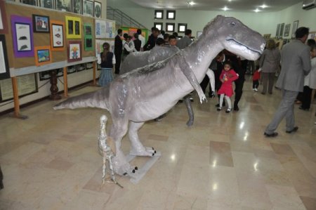 Daha sonra sergiyi gezen misafirler, atık kağıtlardan yapılmış dinozor, zebra, zürafa, fil, aslan, timsah gibi maketleri ilgiyle izledi. Sergide İl Milli Eğitim Müdürü Celalettin Ekinci’ye bir sürpriz yapıldı. Ekinci’ye, yağlı boya ile yapılmış resmi hediye edilirken, serginin düzenlenmesinde emeği geçenlere plaket verildi.