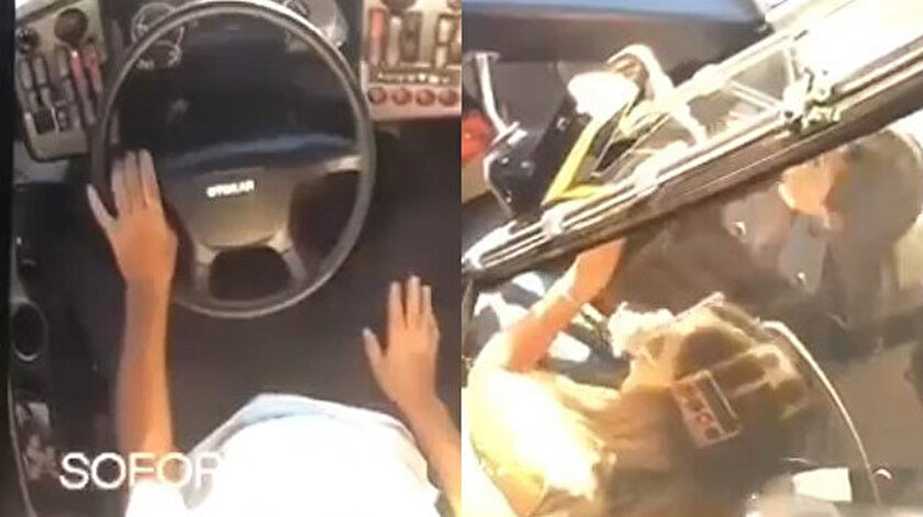 Görüntülerde, şoförün bu sırada elini başına götürüp alnını tutması ve seyir halinde olduğu şeritten çıkması yer alıyor.