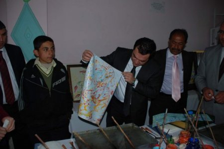 Yozgat’ın Aydıncık ilçesi Halk Eğitim Merkezi kursiyerlerinin ahşap boyama ve ebru sanatı sergisi düzenlenen törenle açıldı.