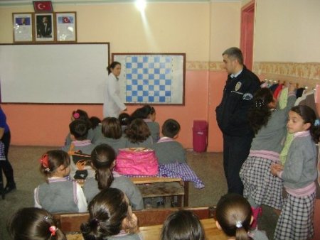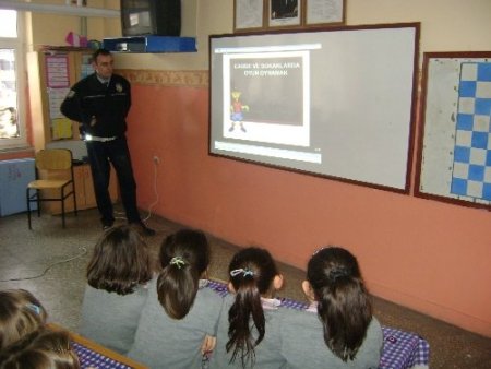 Yozgat’ın Aydıncık ilçesinde Emniyet Amirliği Trafik Denetleme Bürosu'nda görevli polis memurları, ilköğretim öğrencilerine trafikte uymaları gereken kurallar hakkında eğitim verdi. Aydıncık İlköğretim Okulu'nda düzenlenen seminerde trafik polisleri 1, 2 ve 3. sınıf öğrencilerine trafik ışıkları, yaya ve okul geçitleri, okul servis araçlarında uyulması gereken kurallar hakkında sinevizyon eşliğinde bilgi verdi. Konuyla ilgili bilgi veren İlçe Emniyet Amiri Savaş Durdu, trafik kurallarına herkesin uyması gerektiğini belirtti. Durdu, "Trafik kurallarında dikkat edilmesi gereken hususları öncelikle küçük çocuklarımıza öğretmek istedik. Bu yüzden ilköğretim 1,2 ve 3 sınıf öğrencilere sinevizyon gösterimi ile trafik kurallarını öğrencilerimize anlattık. Verilen eğitim çocuklarımıza şimdiden trafik kurallarına uymaları konusunda örnek olacaktır. Tabi burada aileler de kendi üstüne düşen görevi yaparak çocuklarını trafik konusunda bilgilendirmeli ve onlara örnek davranışlar göstermelidir." dedi. Emniyet Amiri Durdu trafik konusunun herkesin sorunu olduğuna dikkat çekerek, "Trafik ayrı bir kültür, belki de kurallar olarak her ülkede de ufak tefek değişiklikler var. Bizim ülkemizde trafik sabır istiyor, beceri istiyor, trafik saygı istiyor, dikkat istiyor. Biz bu duyarlılığı oluşturmak için burada bulunuyoruz. Ne yazık ki insanlar da 20-30 yaşından sonra duyarlılık kültürü oluşturmak çok zor. Ancak ve ancak gençler bu duyarlılığı oluşturacaklar, gelecekte bizim yaşadığımız acıları yaşamayacaklar." diye konuştu. CİHAN