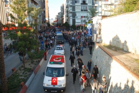 Hakkari'nin Çukurca ilçesinde teröristlerin saldırısı sonucu şehit olan Aydınlı er Mehmet Çetin (21) dualarla son yolculuğuna uğurlandı. Hakkari şehitlerinden Mehmet Çetin'in Türk bayrağına sarılı naaşı, Van Jandarma Asayiş Kolordu Komutanlığı'ndan hareket eden uçakla İzmir’e oradan da 16.30 sıralarında helikopterle Nazilli Şehir Stadı’na getirildi. Helikopterden alınan şehidin Türk bayrağına sarılı tabutu, askerlerin omuzlarında cenaze arabasına götürülerek Koca Camii’ne götürüldü. Terhisine 90 gün kala şehit düşen er Çetin’in cenazesini gözyaşlarını tutamayan acılı anne Şerife ve Baba Bekir Çetin’in yanı sıra binlerce kişi karşıladı. Şehidin cenazesi ikindi namazına yetiştirilemezken namazdan sonra Nazilli'de bulunan Koca Camisi'nde tören düzenlendi. Törene şehidin ailesi, yakınları, AK Parti Genel Başkan Hüseyin Tanrıverdi, milletvekilleri, Aydın Valisi Kerem Al, Nazilli Kaymakamı Mehmet Okur ve çok sayıda vatandaş katıldı. katıldı. İkindi namazından yaklaşık 20 dakika sonra kılınan cenaze namazı sonrası şehit Çetin'in Türk bayrağına sarılı tabutu bir süre omuzlarda taşındı. Beş çocuklu Çetin ailesinin en küçüğü olan şehidin Türk bayrağına sarılı tabutu, cenaze aracıyla toprağa verilmek üzere şehidin ailesinin yaşadığı köy olan Nazilli'ye 18 kilometre uzaklıktaki Beğerli Köyü'ne götürüldü. Şehidin cenazesi burada dualarla toprağa verildi. Şehit er Çetin'in, dağıtım iznine geldikten sonra bir daha izin kullanmadığı, terhisine de 90 gün kaldığı öğrenildi. Cenazede şehidin babası Bekir Çetin metanetini korumaya çalışırken anne Şerife Çetin ve ablası Fatma Tuzsuz, yakınlarının yardımıyla güçlükle ayakta durabildi. Şehiden ablası Tuzsuz, "Kardeşim, yavrum bunu yapanların elleri kırılsın. Benim ciğerim yanıyor." diye feryat etti. Cenaze namazı öncesinde ve sonrasında Nazilliler terör örgütüne lanet sloganları yağdırdı.