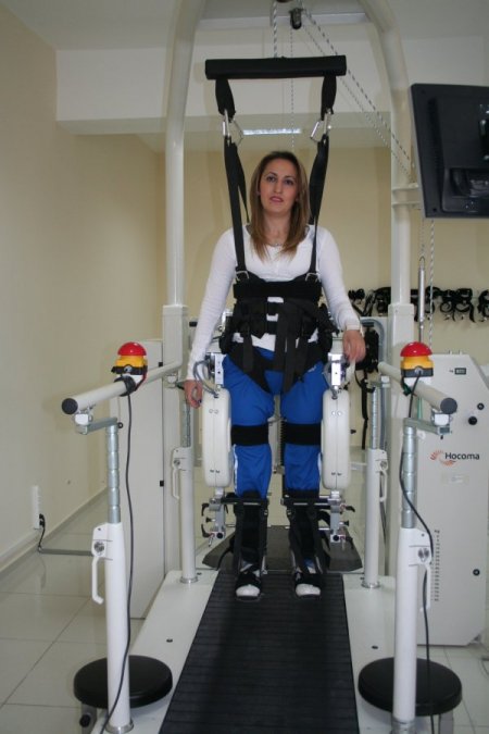 "Kısa ve uzun oturma dengesi ile yatak içi aktiviteleri olmayan hasta 2 ay fizik tedavi görmüş. Bize başvurduğunda bir çift uzun yürüme ortezi ve walker ile ambule idi. Dizlerini yeni kitlemeye başlayan hasta da fizik tedavi ve rehabilitasyon süreci içerisinde olumlu gelişmeler görüldü. Fizik tedavi ve rehabilitasyon programında fizyoterapist eşliğinde eklem hareket açıklığı egzersizleri, progresif rezistif egzersizleri, postür egzersizleri, yürüme eğitimi, hidroterapi ve yardımcı unsur olarak tedavide lokomat kullanıldı. Her iki kas güçlerinde belirgin iyileşme görüldü. Tedavisine devam edilmektedir.” CİHAN