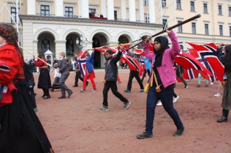 Norveç'in başkenti Olso'da binlerce kişi, bağımsızlık gününde Karl Johans Caddesi’nde yürüdü. Norveç bayrakları ve geleneksel kıyafetlerle Kraliyet Sarayı'na yürüyen halk, senede bir kez saray balkonuna çıkan kraliyet ailesini selamladı. Kutlamalara çok sayıda göçmen de katıldı.