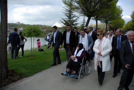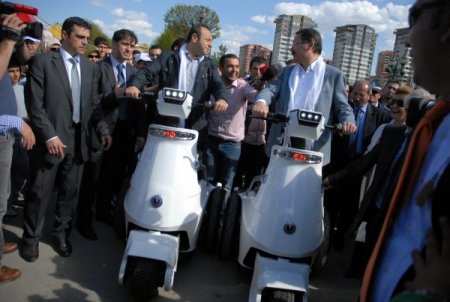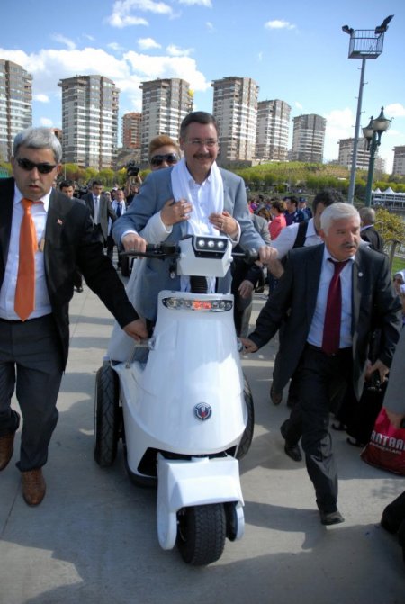 Vatandaşların ilgisi arasında trenden indikten sonra Avrupa Günü kapsamında kurulan stantları dolaşan Bağış ve Gökçek, daha sonra Göksu Parkı içindeki gölette deniz bisikletine bindiler. Gökçek ile Bağış’ın kullandığı deniz bisikletine Melih Gökçek’in eşi Nevin Gökçek de eşlik etti. Yarım saate yakın gölette tur atan Bağış ile Gökçek, daha sonra ‘ginger’ diye tabir edilen aracı bir süre kullandı. Nevin Gökçek eşi Melih Gökçek’in kullandığı araçta, Ankara Büyükşehir Belediye Başkanının eşine sımsıkı sarılması dikkatlerden kaçmadı.