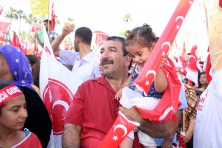 Türkiye için tarihi karar anına 3 gün kaldığını hatırlatan Bahçeli, "Kader anı ufukta belirmiştir. 12 Haziran’da milli irade bir kez daha tecelli edecektir. İnanıyorum ki aziz milletimiz taktir ettiği siyasi partiyi iktidara taşıyacaktır. Mutlaka sandığa gidin ve oynanacak oyunlara dikkat edin. AK Parti’ye oy verecek kardeşlerime sesleniyorum. AK Parti’yi uyarın, sandıkta mesajınızı iletin. Çok düşük ihtimalle de olsa AK Parti ile geçecek üçüncü yıla imkan vermeyin. Bu zihniyete Adana’nın şamarını kararlılıkla indirin. AK Parti’nin vereceği ve yapacağı bir şey kalmamıştır. AK Parti yorgundur, düşkündür bitkindir. Heyecanını ve dermanını kaybetmiştir. Hedeflerini yitirmiştir. Türkiye kepenklerini indirmeden bu iktidarın fişi çekilmelidir." şeklinde konuştu.