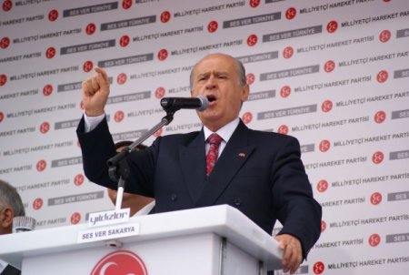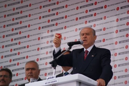 Partisinin Sakarya Kent Meydanı’nda düzenlediği mitingte konuşan Bahçeli, vatandaşları oy vermeye çağırdı. 12 Haziran seçimlerinin Türkiye’nin karşı karşıya kaldığı çok ağır, derin tehlike, tehdit ve tuzakların olduğu bir döneme rastgeldiğini ifade eden Bahçeli, seçimlerin yol kavşağına sürüklenmiş bir Türkiye’de millet iradesinin yeniden tercihi belirlemesine bir fırsat ve imkan bulacağı bir seçim olacağını vurguladı.