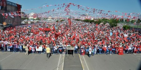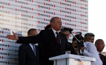 Antalya’daki mitinginde sık sık Başbakan Recep Tayyip Erdoğan’a yüklenen Devlet Bahçeli'nin, ana muhalefet partisi CHP’ye yüklenmemesi ise dikkat çekti. 20 bin kişiye yakın katılımın gerçekleştiği Antalya mitinginde Devlet Bahçeli, Başbakan Erdoğan’ın gözlerinin bozulduğunu iddia etti. Sabah saat 06.30’dan akşam 24.00’e kadar Recep Tayyip Erdoğan’ın tüm televizyonlarda konuştuğunu ve halkın da Başbakanı dinlemeye mecbur bırakıldığını öne süren Bahçeli, Başbakan’ın ortaya koyduğu tablonun bu ülkenin insanlarının düşüncesiyle örtüşmediğini kaydederek, “O zaman Recep Tayyip Erdoğan’a, öyle bir Türkmen tokadı vurun ki tepe taklak iktidardan gitsin. Ama inanıyorum ki sizin yaşadığınız hayat gerçektir.” dedi.