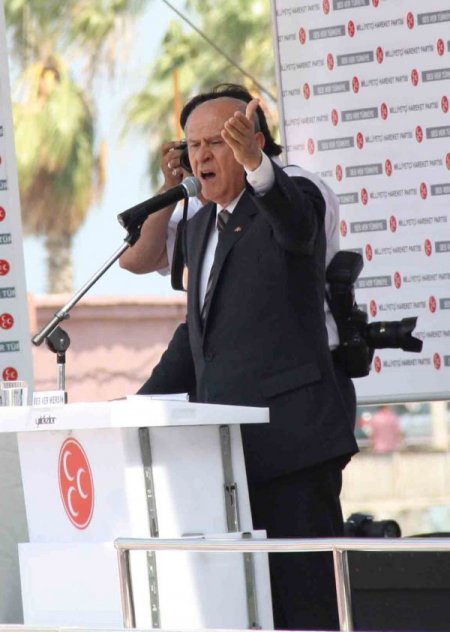 Mersinlilere sandığı hedef göstererek seçime en yüksek oranda katılmalarını isteyen Bahçeli, 12 Haziran seçimlerinin 8,5 yıldır iktidar olan AK Parti’nin tasfiye seçimi olacağını söyledi.