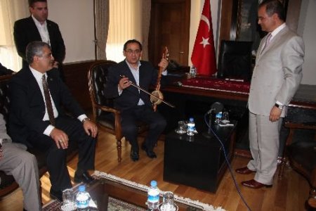 Burdur'da ilk olarak valiliği ziyaret eden Bakan Demir, Vali Süleyman Tapsız'da şehir hakkında bilgi aldı. Tapsız, Bakan Demir'e Burdur'un yöresel çalgılarından kabak kemane ve sipsi hediye etti. Bakan Demir, kabak kemaneyi eline alarak bir süre çalmayı denedi.