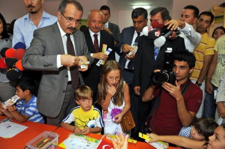 Milli Eğitim Bakanı Ömer Dinçer, okula uyum programı kapsamında anasınıfı öğrencileri ile bir araya geldi. Miniklerin çizdiği resimleri inceleyen Dinçer, çocuklara önce çikolata sonra da diş fırçası ve macun dağıttı.