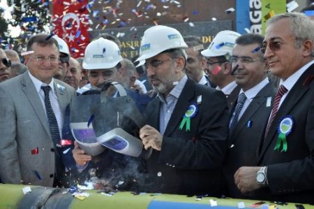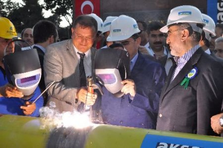 Yapılan konuşmaların ardından Adalet Bakanı Sadullah Ergin ile Enerji ve Tabii Kaynaklar Bakanı Taner Yıldız, Aksa Enerji tarafından döşenecek doğalgaz borusuna ilk kaynağı yaptı. Kaynak işlemi sırasında tören alanını süsleyen balonlardan oluşan süs kemerlerinden bir tanesinin ipi rüzgarın etkisiyle kopunca Bakan Ergin'in üzerine düştü. Düşen süs balonları Bakan Ergin'in korumaları tarafından hemen arkaya atıldı.