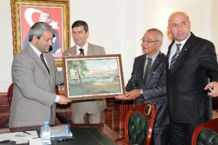 Bakan Nihat Ergün'ü ziyaret eden heyette yer alan Manavgat Ticaret ve Sanayi Odası (MATSO) Başkanı Dr. Şükrü Vural, ziyarette Bakan Ergün'e, turizm şehrinin simgesi olan Manavgat Irmağı ve üzerinde tarihi köprü olan bir yağlı boya resmi hediye etti.