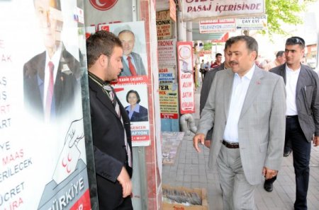 Çevre ve Orman Bakanı Veysel Eroğlu, seçim çalışmalarına memleketi Afyonkarahisar’da devam ediyor. Eroğlu, seçim çalışmaları kapsamında il merkezinde esnaf ziyareti yaptı.